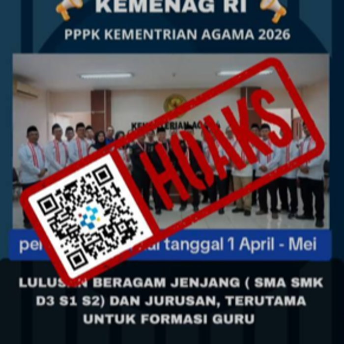 Informasi mengenai pendaftaran PPPK Kementerian Agama periode April–Mei 2026 terbukti hoaks dan berpotensi menjadi modus penipuan digital.